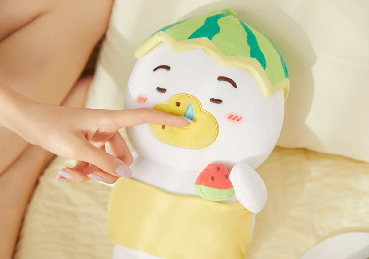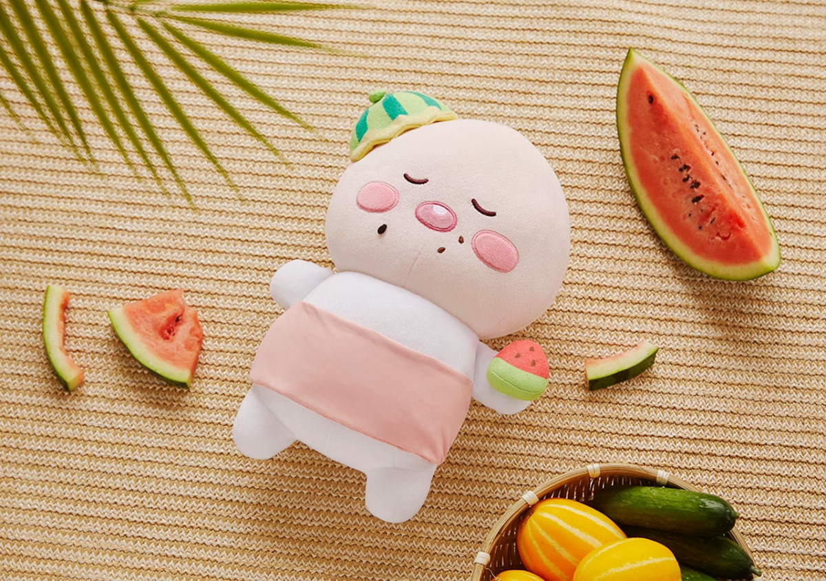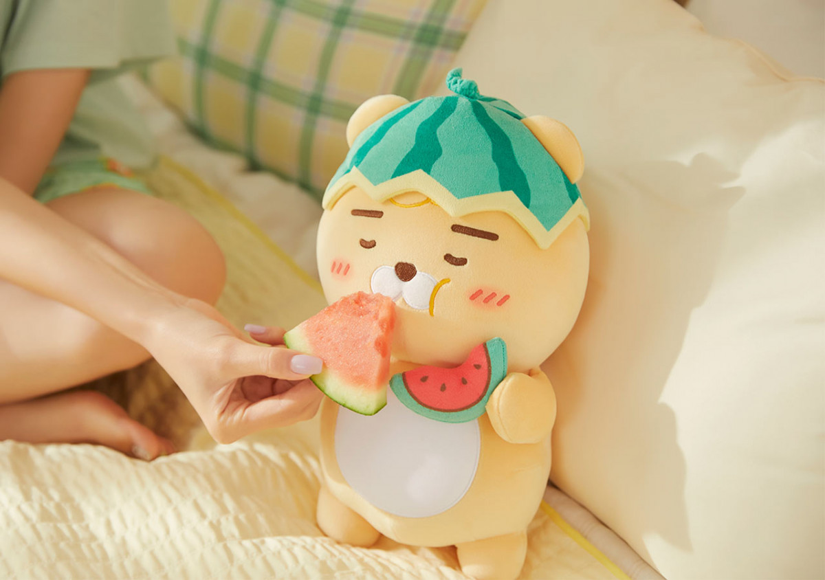 首先要帶大家看的就是這款超萌的小西瓜玩偶!這次Kakao Friends家的人氣角色萊恩、APeach以及Tube都變成胖嘟嘟的愛睏小西瓜,光是看到三隻小玩偶躺在涼席上的樣子,都能感受到清涼悠閒的夏日氛圍了!