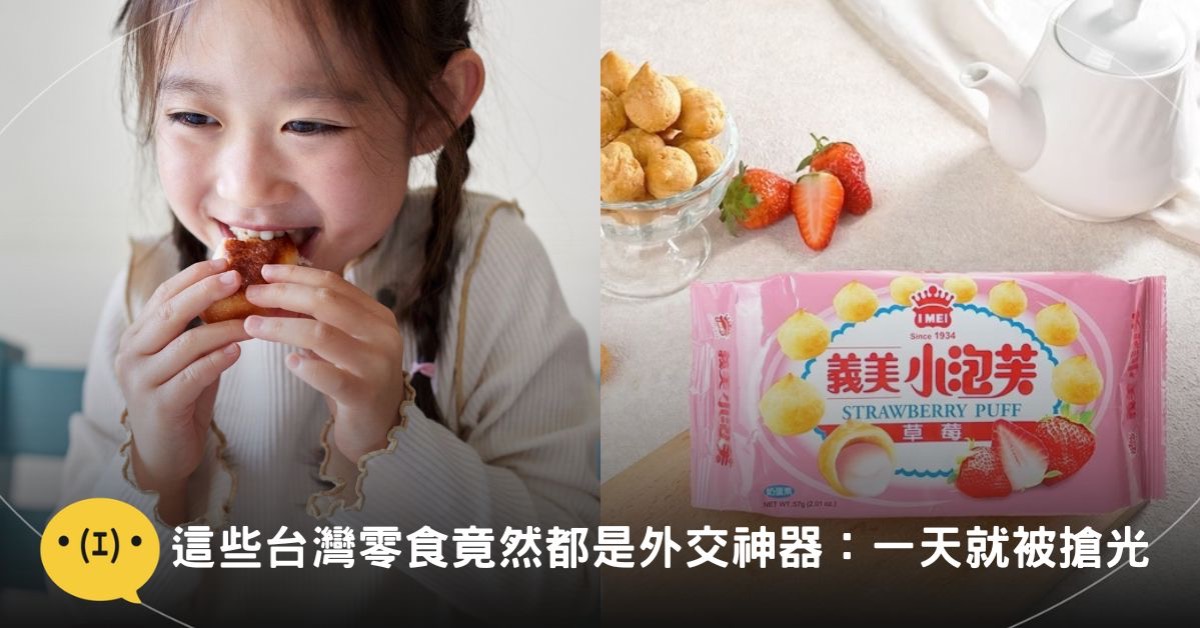 首先第一名就是「義美小泡芙」。許多網友表示義美小泡芙根本是台灣的外交神器,不限國籍,每個外國人都對義美小泡芙讚譽有加;再來就是蔥軋餅(牛軋餅),鹹甜滋味常讓外國人第一口咬下去懷疑人生,但之後就「涮嘴」的停不下來:「超多日韓友人問我要在哪裡買」、「早知道就帶一整箱來賣,學費直接賺回來。」