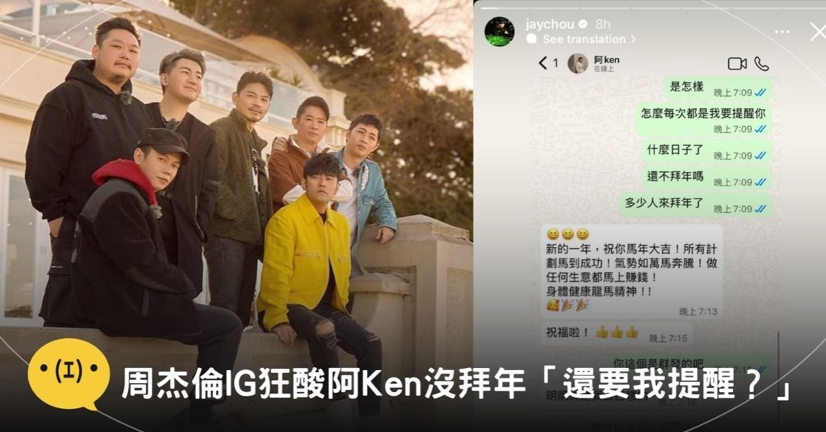 周杰倫率先曬出與阿Ken的聊天截圖,語氣毫不客氣地表示:「是怎樣?什麼日子了,還不拜年嗎?怎麼每次都是我要提醒你?」瞬間展現「老大氣場」。