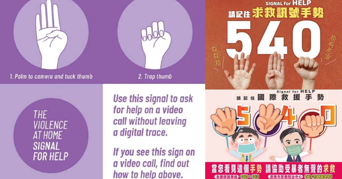 台灣教育局近年透過學校宣導「540國際救援手勢」,播放教學影片,希望幫助大家危急時刻襲擊時,用手勢就能求援救命。