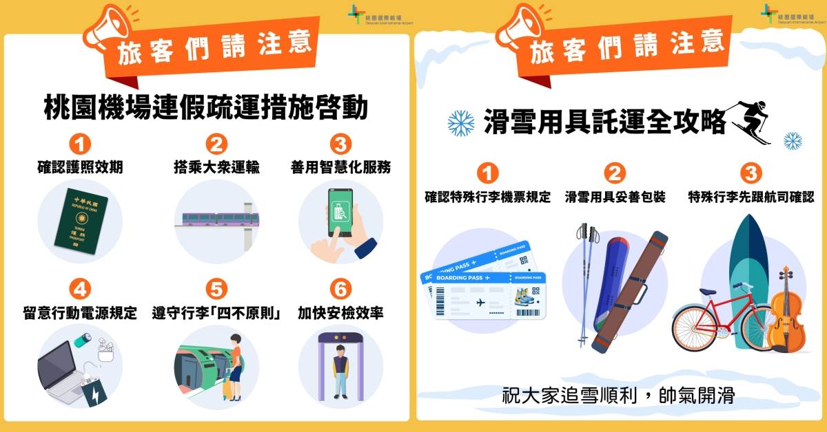 桃園國際機場呼籲掌握「搭飛機8大訣竅」確保旅程更順利。FB@桃園國際機場 Taoyuan International Airport