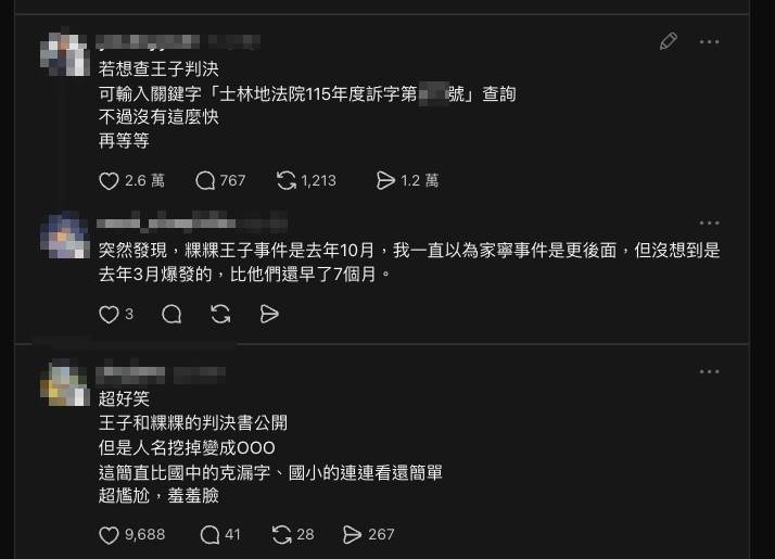 粿王不倫戀「判決書」是否公開掀議,引發網友熱議提供查詢判決書內容的方式。圖片來源:Threads