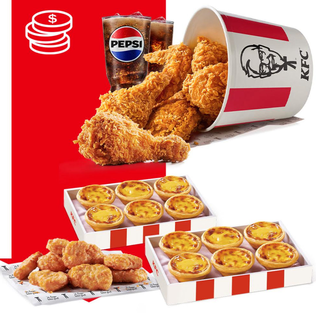 肯德基推出的333元「爽嗑桶」向來話題性十足,這次配合普發萬元又再次回歸,而且大方到連外送都能享優惠,組合內含6塊咔啦脆雞加上6入經典蛋撻,鹹甜雙主角一次上桌,完全就是「不想選,就全部來」的最佳解。活動至12/1,喜歡肯德基的朋友不妨趁這段時間手刀衝一波。
